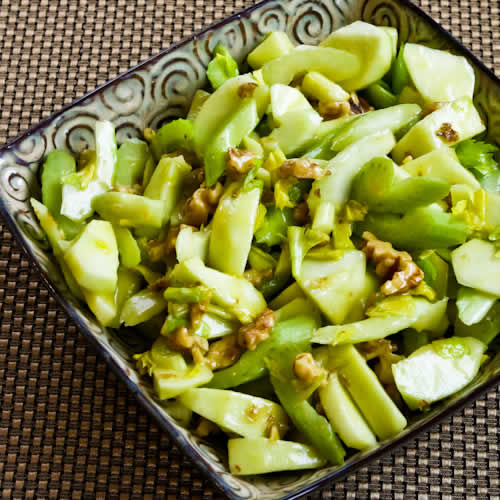 We're still counting down to Thanksgiving, and here's another recommendation for our list of diet-friendly Thanksgiving Recipes for anyone who's trying to maintain some semblance of control on the big over-eating day. This recipe is kind of a kicked-up version of the traditional Waldorf Salad you often see on Thanksgiving menus, and after I was completely through making it, taking photos, and eating a big bowl of it for lunch, I had the thought that it would have been nice to toss in a few dried cranberries if you had some. Actually, I didn't have any, so maybe I'm glad I didn't think of it sooner, but I do recommend that variation if you're making this for Thanksgiving.